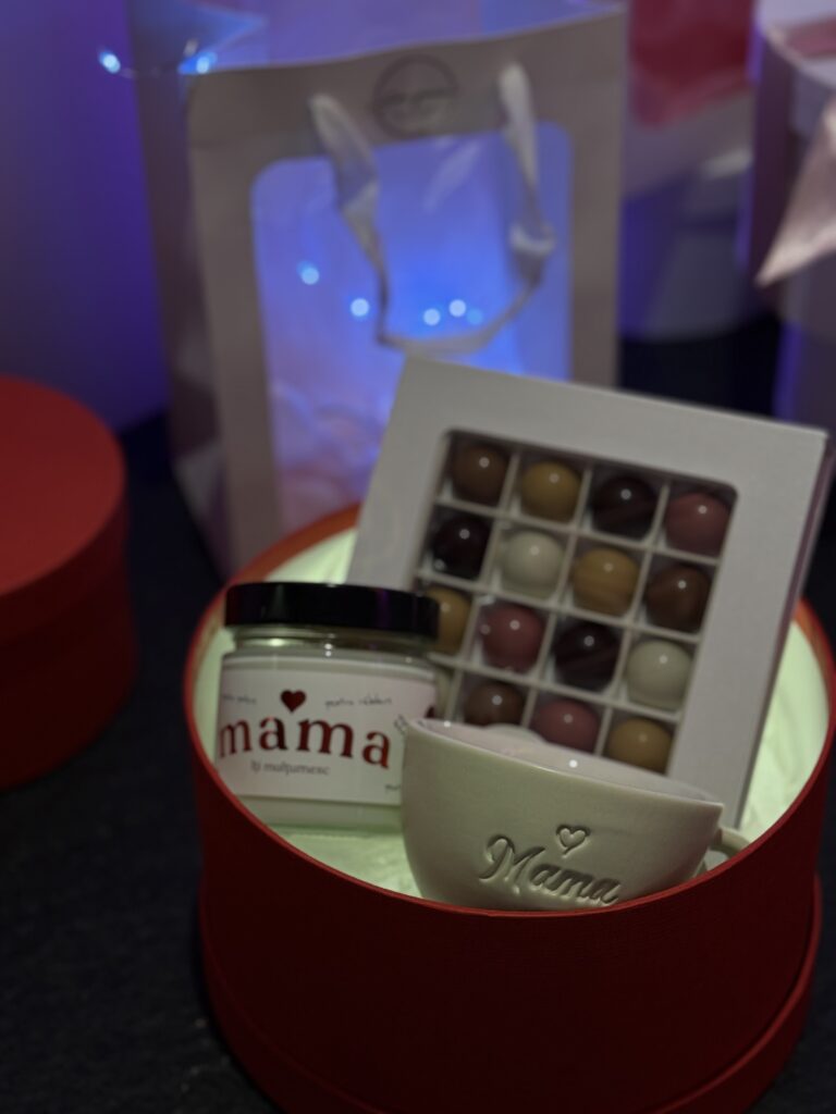 Gândită ca o pauză meritată, cutia aduce împreună aromele delicate ale ciocolatei, confortul unei băuturi calde și o lumină blândă care umple camera de calm. Un cadou sincer – pentru mama care dă mereu totul și uită, uneori, să-și păstreze ceva și pentru ea.